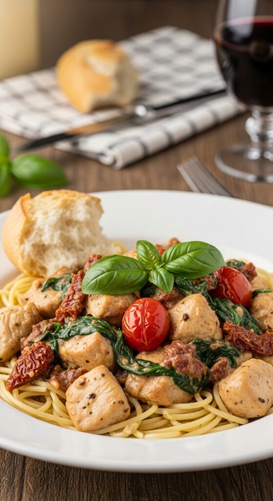 Originating from Tuscan cuisine in Italy, this recipe reflects the region’s love for fresh, high-quality ingredients and simple, hearty cooking methods. The creamy sauce, often enriched with Parmesan cheese and a hint of wine, elevates the dish from ordinary chicken to a restaurant-quality meal that’s perfect for weeknight dinners, date nights, or special occasions.