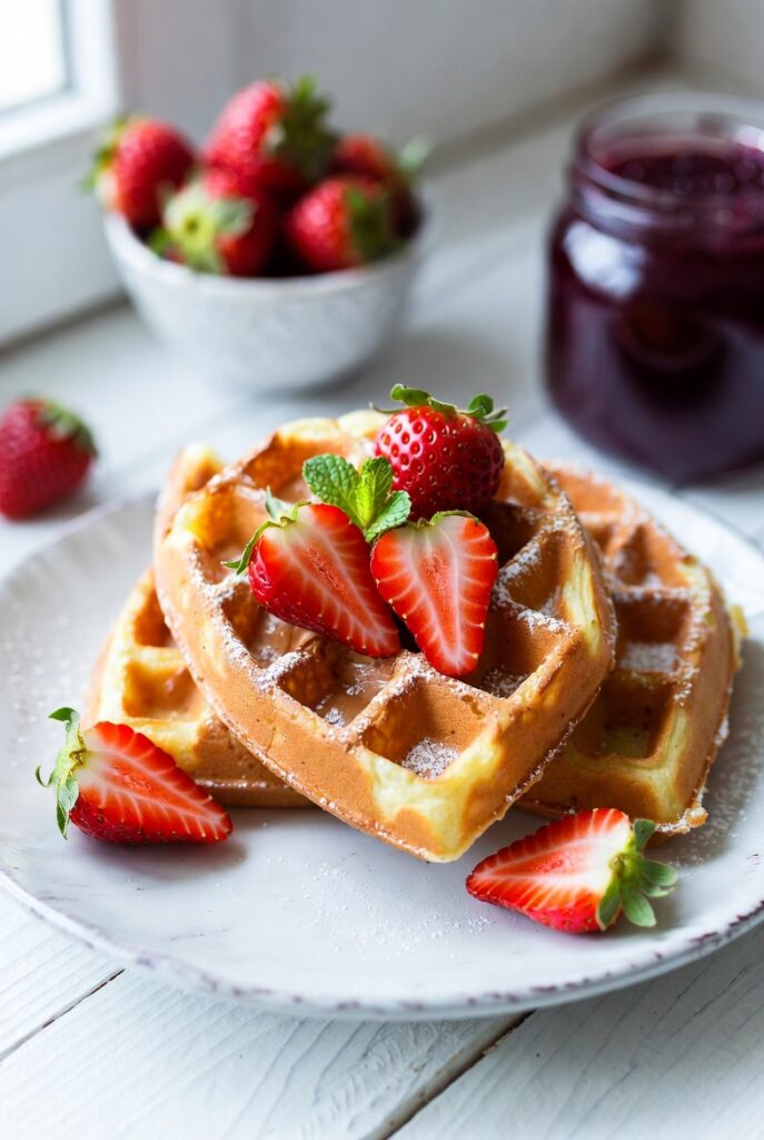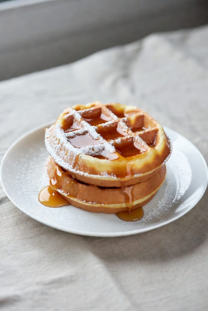 1. The “Symmetry-Stack”: Serve two waffles overlapping slightly to emphasize the deep grids.