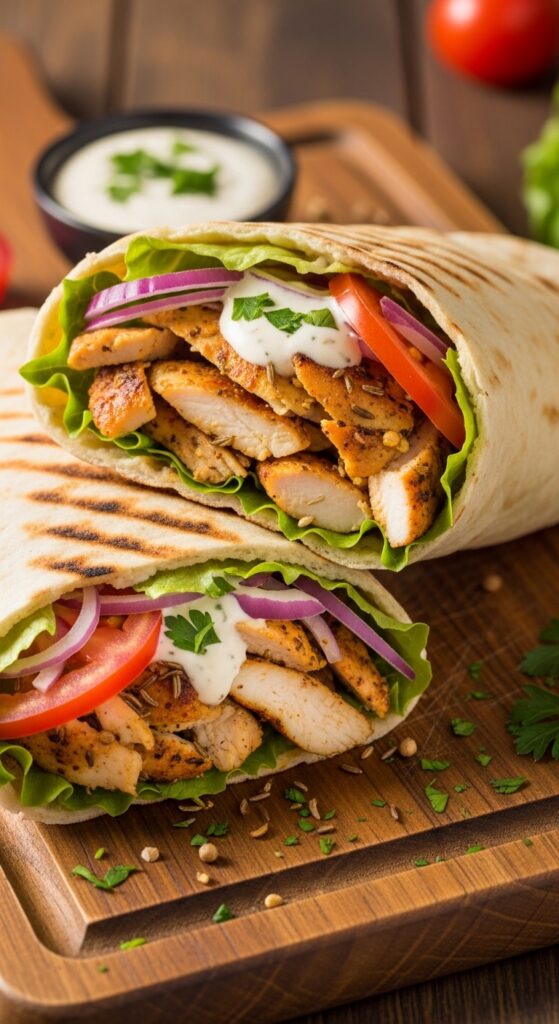 The Chicken Shawarma Wrap is a delicious, healthy, and quick meal that brings the flavors of the Middle East into your kitchen. With juicy spiced chicken, fresh veggies, and creamy yogurt sauce, this wrap is perfect for lunch, dinner, or casual gatherings. 🌯✨