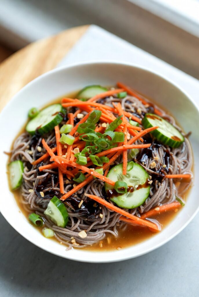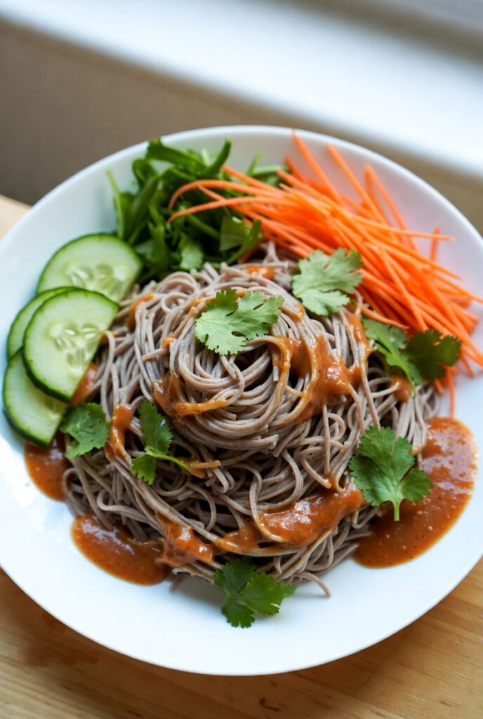 - The “Low-Carb” Flip: Replace half of the soba noodles with “Zoodles” (zucchini noodles) to increase the volume while decreasing the carbohydrate count of the Cold Soba Noodle Salad with Peanut Dressing.