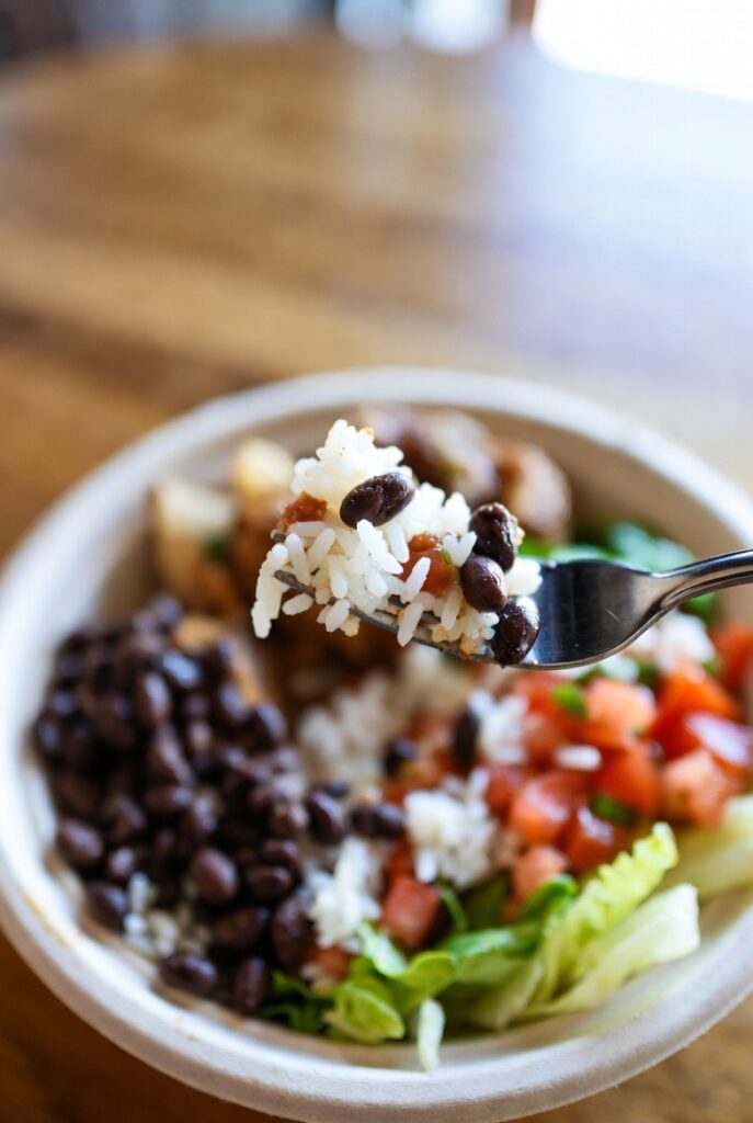 - Storage: Keep the hot components (rice, beans, meat) in separate airtight containers from the cold components (salsa, avocado, sour cream). They will last 4 days in the fridge.