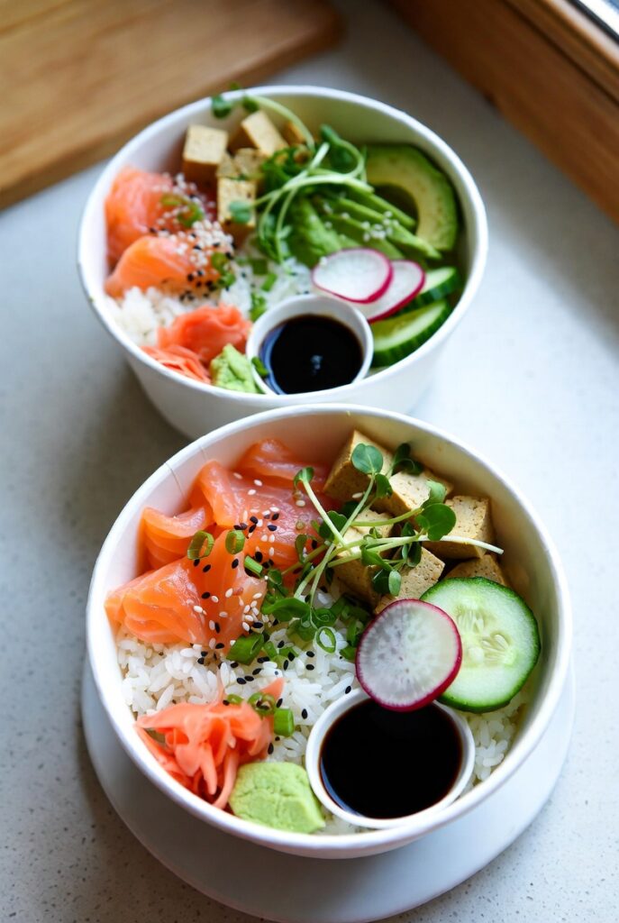 The secret to the Deconstructed Sushi Bowls (with Salmon or Tofu) is the seasoning of the rice. We use a mixture of rice vinegar, sugar, and salt, which creates a bright, acidic profile that cuts through the richness of the salmon or the earthiness of the tofu. This acidity also serves a functional purpose: it acts as a mild preservative and helps the rice maintain its moisture. When the rice is seasoned correctly, it provides the essential “stage” upon which all other flavors in the Deconstructed Sushi Bowls (with Salmon or Tofu) can perform.