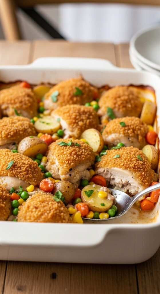 Inspired by classic comfort food casseroles, this dish combines the richness of baked chicken with the convenience of one-pan cooking. Whether you’re looking for a quick weeknight dinner or a stress-free meal prep recipe, Dump and Bake Chicken delivers big flavor with minimal effort.