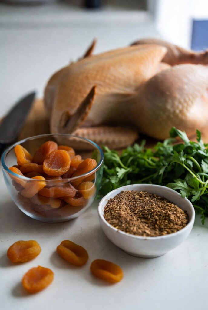 - The Apricot Rehydration: Dried apricots contain concentrated sugars and pectin. As they simmer, they release these natural thickeners into the sauce while simultaneously drinking in the chicken fat and spice oils. This is “Osmotic Exchange” at its most delicious.