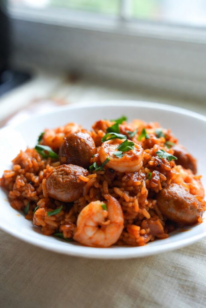 In a One-Pot Jambalaya with Sausage and Shrimp draft, the “Authenticity” of the flavor depends on the smoke and the spice.
