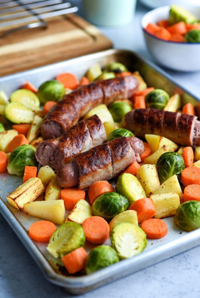 The Sheet Pan Sausage and Root Vegetables is a premier example of “Volume Eating.” Because root vegetables are high in fiber and water content, they allow you to consume a physically large portion of food for a relatively moderate caloric load. This triggers the stretch receptors in the stomach, sending “fullness” signals to the brain earlier than processed foods would.