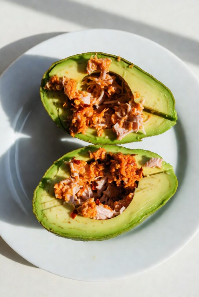 The brilliance of Spicy Tuna Stuffed Avocados lies in the sensory contrast of every bite. You have the silky, buttery texture of the avocado meat acting as a cooling base for the aggressive, umami-rich heat of the spicy tuna mixture. It is a dish that honors the body’s need for clean fuel while satisfying the “foodie” desire for complexity and “kick.” Whether you are deep in a ketogenic cycle, following a paleo lifestyle, or simply a busy professional seeking a 10-minute gourmet lunch, this assembly provides sustained neurological focus and physical satiety without the heavy aftermath of a grain-based meal.