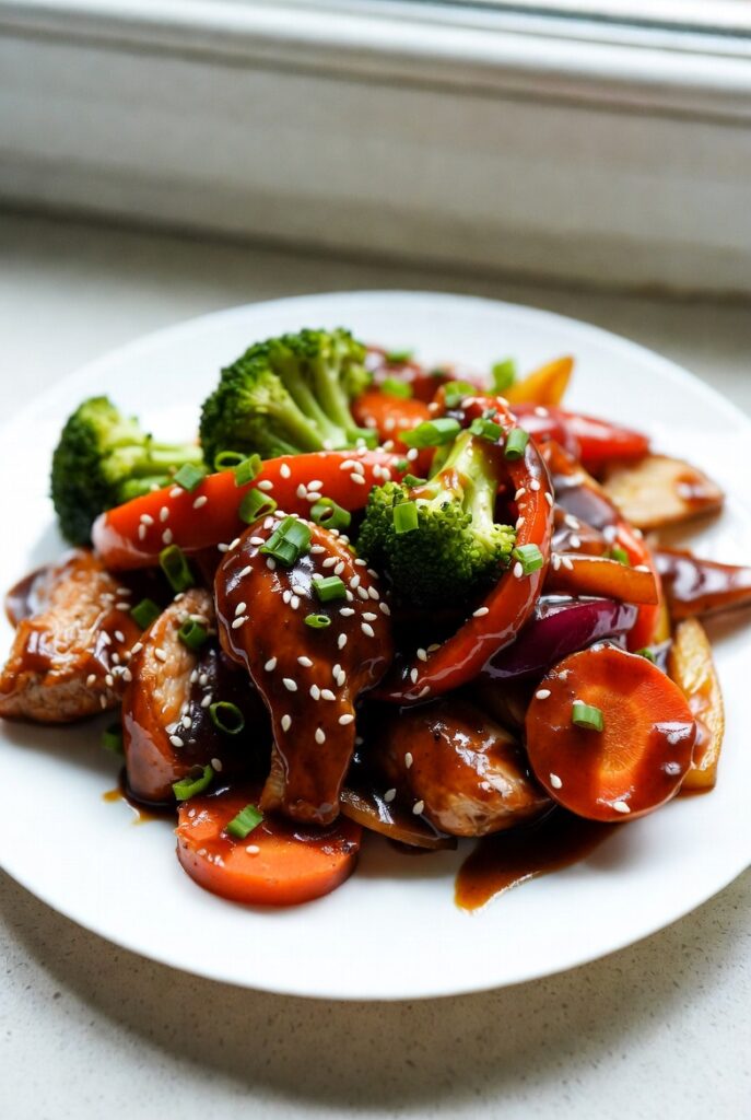 Teriyaki Chicken Stir Fry is a vibrant, flavorful dish that combines tender chicken, crisp vegetables, and a glossy, sweet-savory teriyaki sauce. This dish is a staple of Asian-inspired home cooking, offering both convenience and bold flavors in a single skillet.
