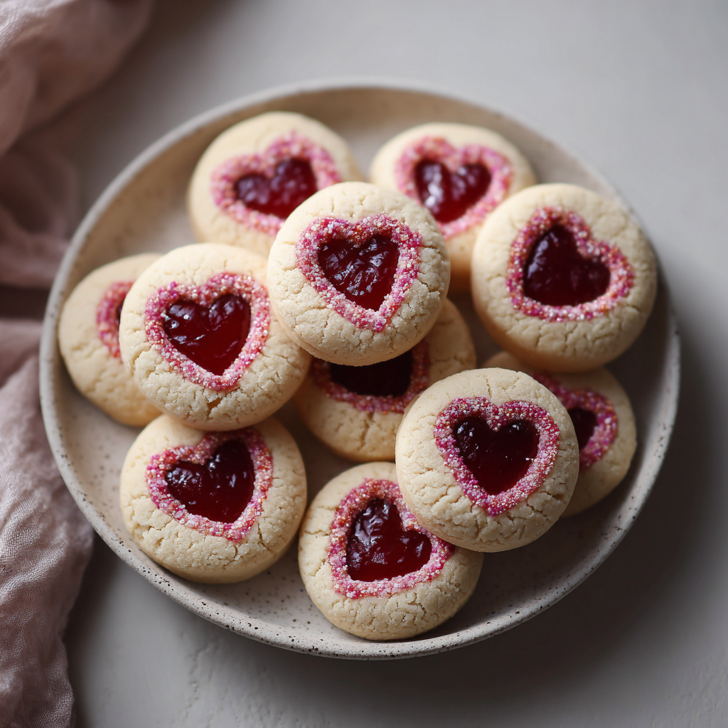 Try using different fillings like raspberry jam, strawberry preserves, or chocolate hazelnut spread. For a more elegant Valentine dessert, you can fill the cookies with white chocolate ganache or cream cheese frosting. Adding pink or red sprinkles on top makes the cookies even more eye-catching for Valentine’s Day.