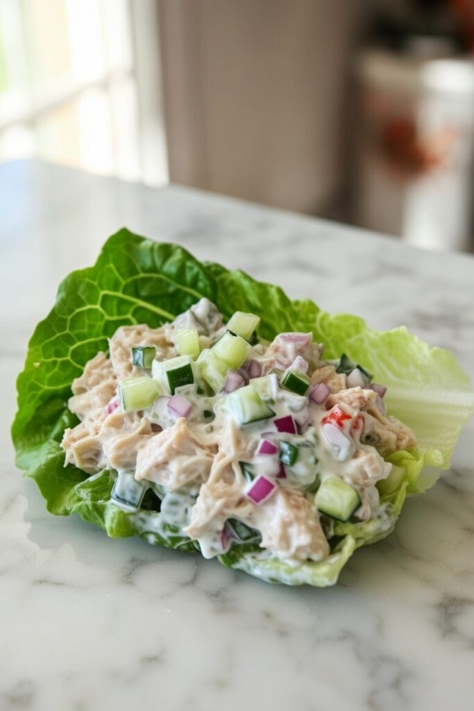The Pro Move: Let the mixture sit in the fridge for 20 minutes before serving. This allows the yogurt to slightly marinate the chicken, deepening the flavor of the Greek Yogurt Chicken Salad Lettuce Wraps.