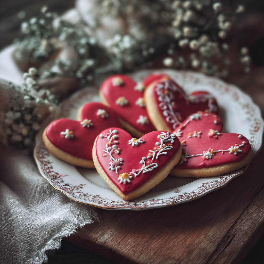 When decorating, less is often more. Simple heart designs, soft pink tones, and clean icing lines tend to perform better on Pinterest than overly detailed cookies. If you’re creating content, photograph your cookies in natural light and use light backgrounds to make the colors pop.
